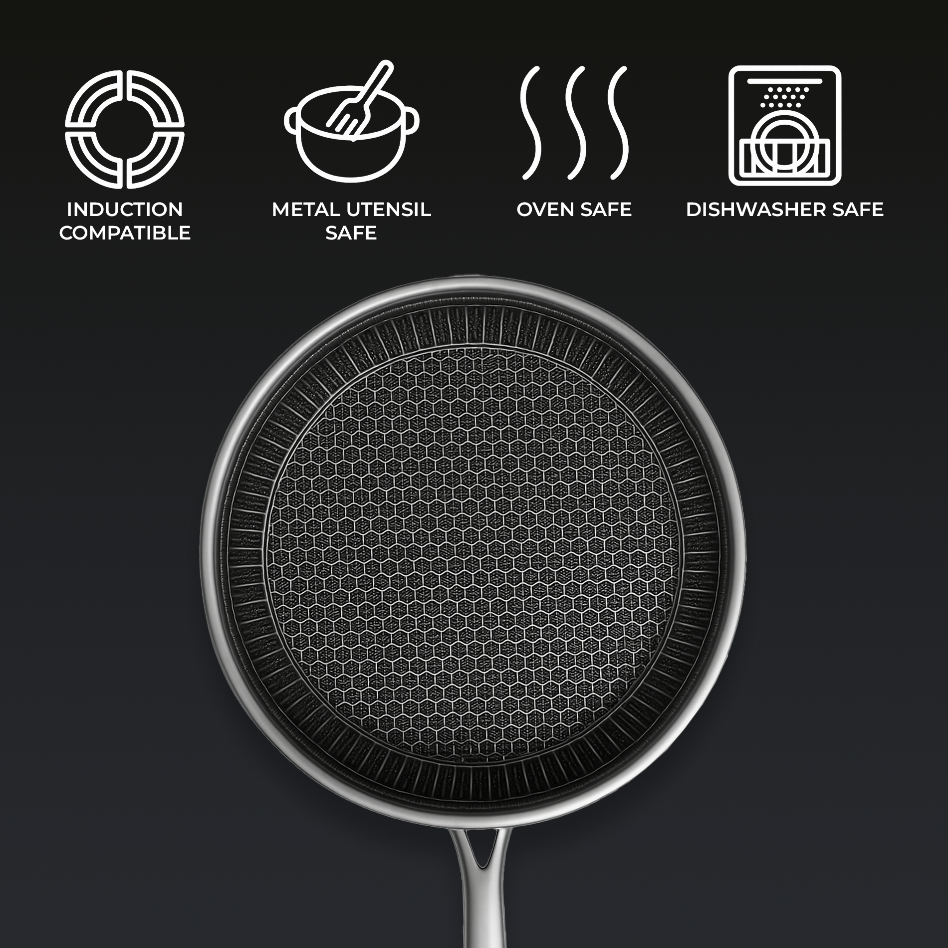 Say goodbye to scrubbing and soaking! Our hybrid pan's non-stick technology ensures food slides right off, making cleanup a breeze. Spend less time cleaning and more time enjoying your meals.