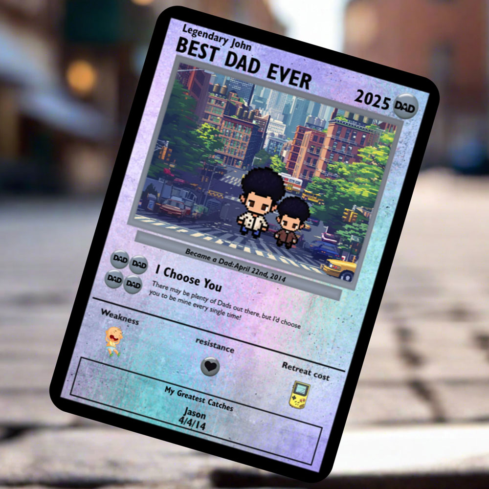 Ordinary cards get tossed, but this one becomes a cherished keepsake. Dad's custom creation is printed on high-quality materials, ensuring it lasts through generations. Every glance at the card brings back joyful memories, making it a treasured family heirloom.