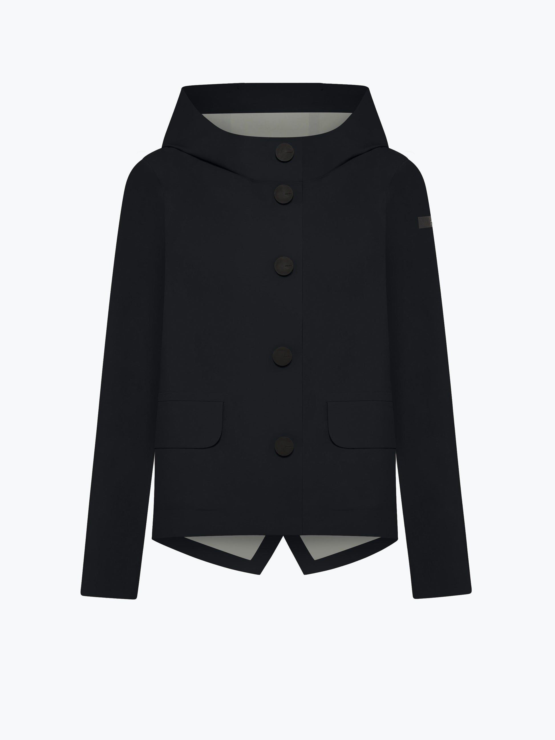 The rounded flap pockets and soft-touch buttons add a unique flair, while the high collar and fixed hood provide extra protection. Experience the perfect blend of style and practicality every time you wear it.